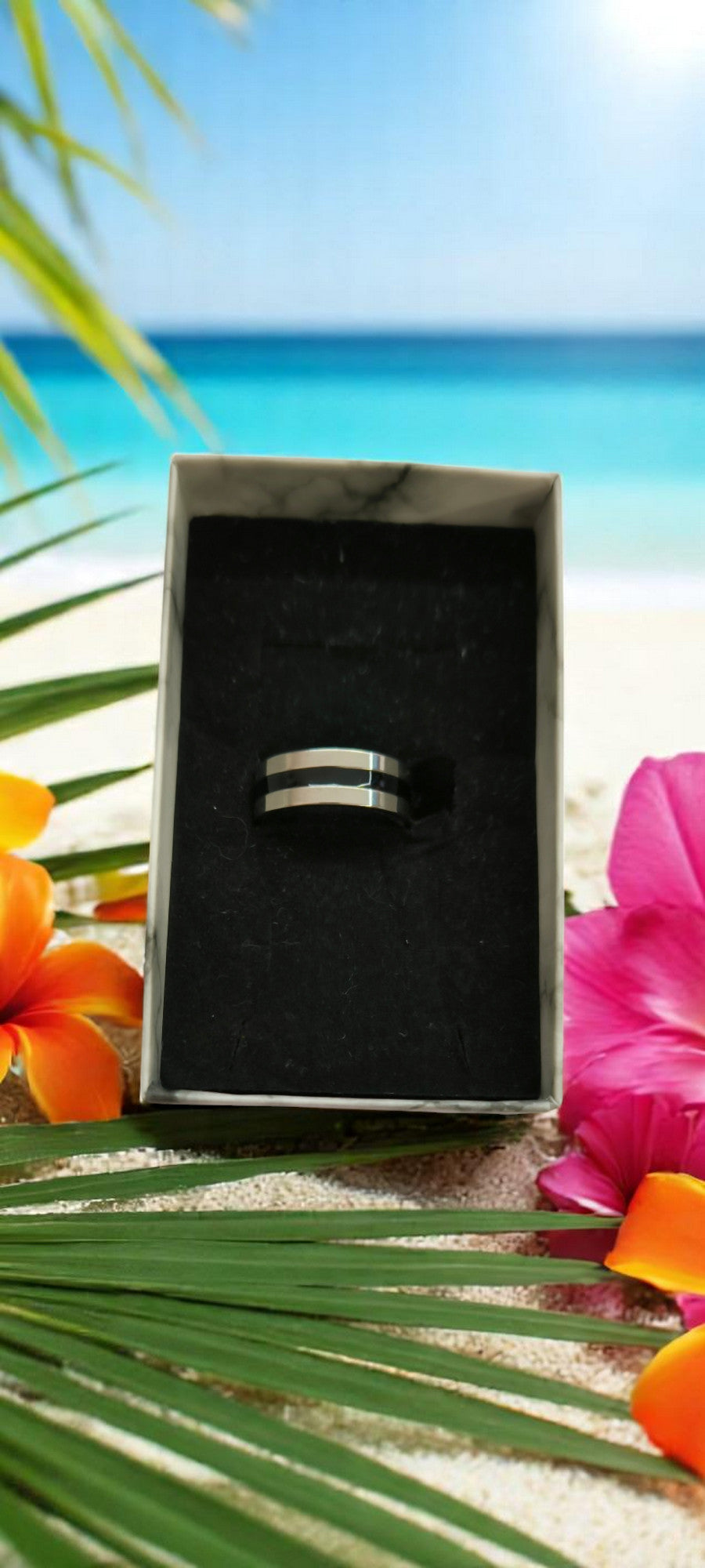 Questo anello largo 7 mm è realizzato in acciaio inossidabile e la personalizzazione è disponibile solo sulla parte interna dell'anello.