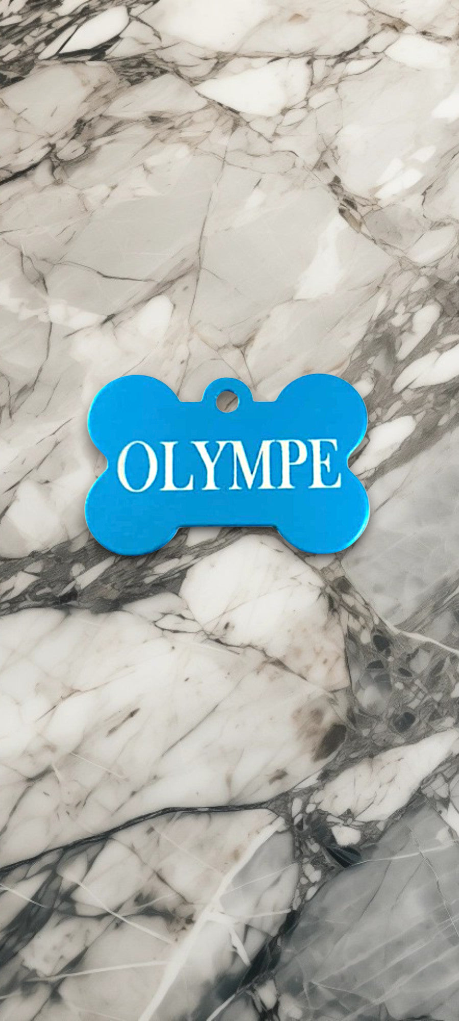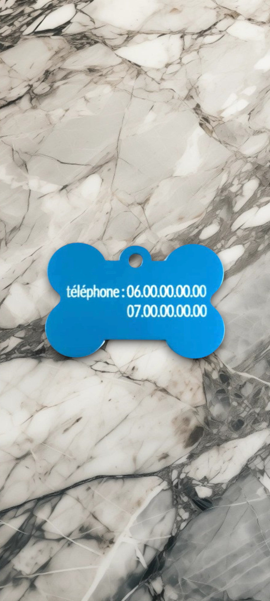Ce médaillon pour chien personnalisable est en aluminium laqué, ce médaillon mesure 25mm long 38mm de large et 1.2mm d'épaisseur. Cette accessoire ne sera pas fourni seul puisque un anneau sera installé dessous pour qu'il puisse s'adapter à tout modèles de colliers ou de harnais.